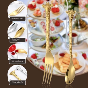 Creativo espesar en relieve jirafa manijas serpiente vajilla cucharas tenedores plata, oro, oro rosa, bronce, colores cambiantes cuchara de café