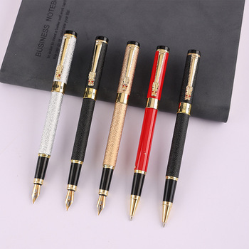 Pluma de firma de oficina con impresión grabable OEM, pluma estilográfica de metal de lujo con Clip de dragón con adornos dorados