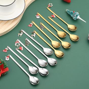 Recién llegado encantador colgante cucharas de café Santa Claus Elk Deer cucharas decoradas niños anfitriona juego de regalo de Navidad para fiesta