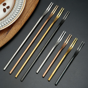 Tenedores de fruta de mango largo de acero inoxidable de varios tamaños, tenedores de oliva, tenedores redondos de mango sólido, tenedores para postre, aperitivo, cóctel