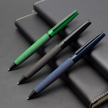 Kits de bolígrafos negros geniales, bolígrafo de barriles recubierto de PU, colores personalizados, bolígrafo verde envuelto en cuero Twist Action
