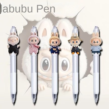ใช่เครื่องเขียนใหม่สำหรับเด็ก labubu ปากกาเจลพลาสติกหดได้ผลิตภัณฑ์น่ารักปากกาเจลแบบกดน่ารักสำหรับการเขียนสี